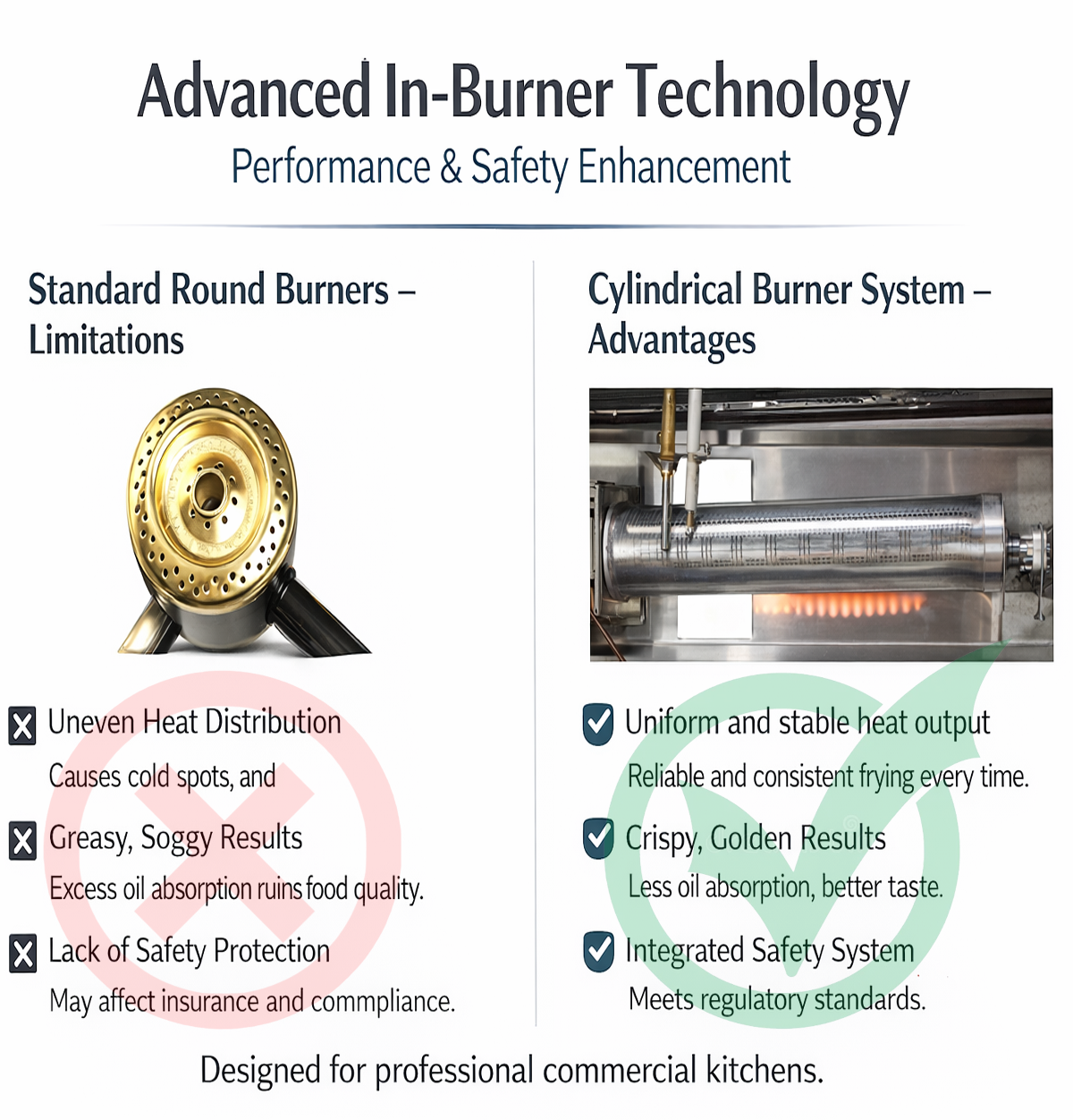 - High Performance: Rapid heating and even oil distribution guarantee consistent frying results.